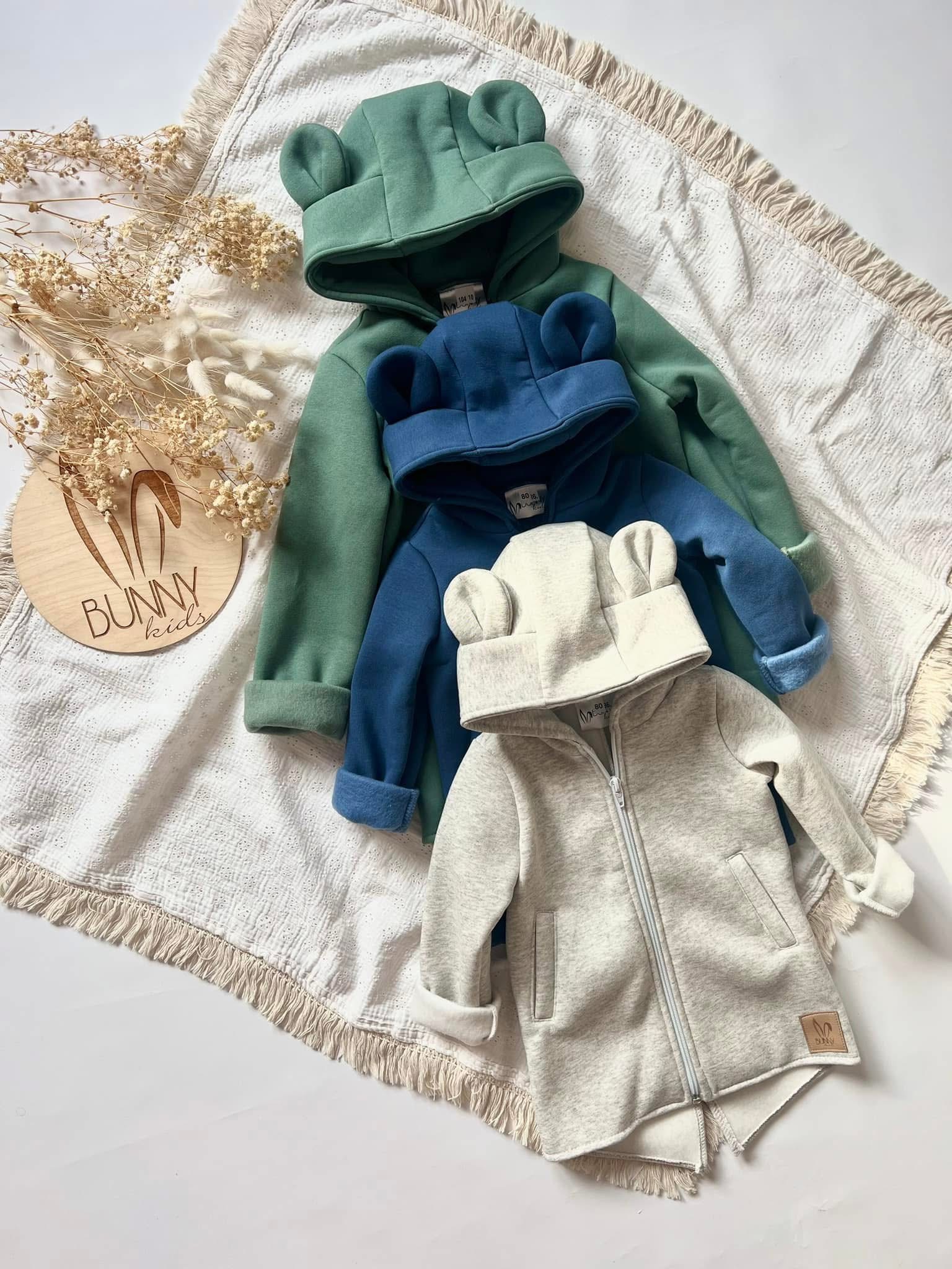 Stylový hřejivý mikino-kabátek s oušky Medvídek od Bunnykids – barva BEIGE: