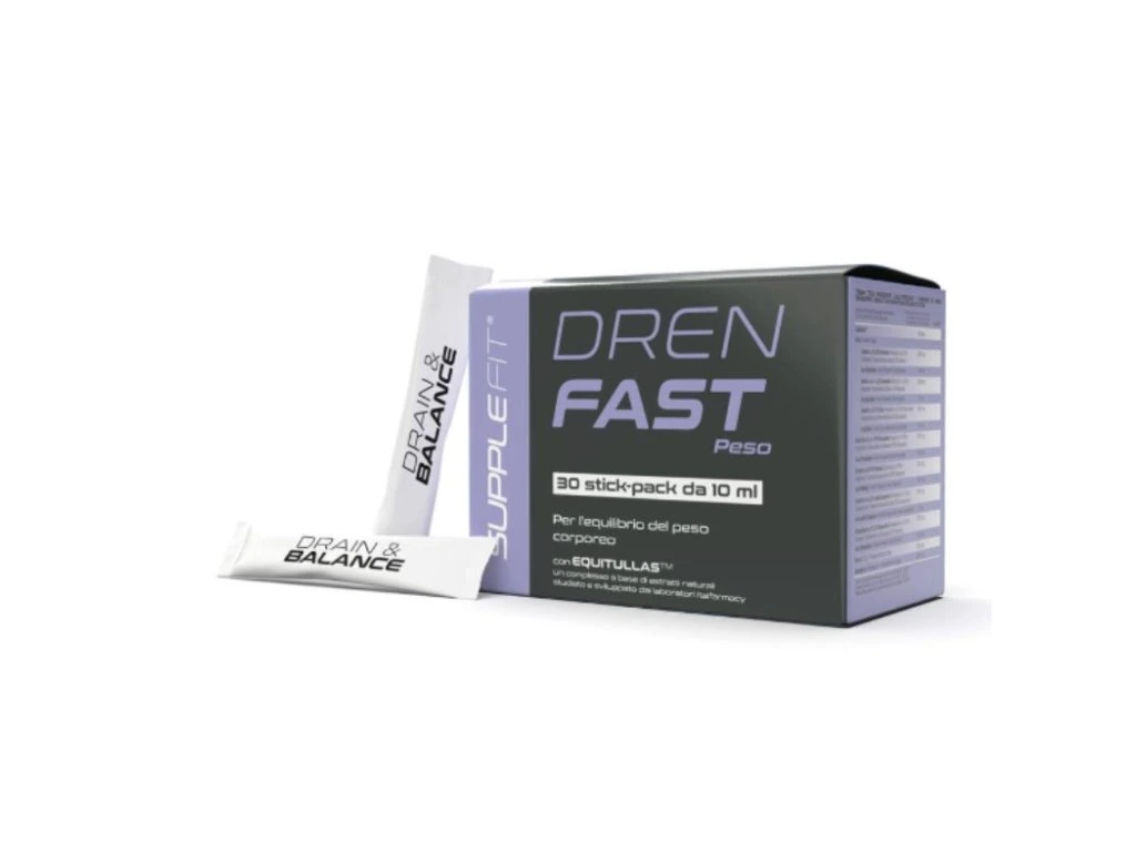 DREN FAST je doplněk stravy s drenážními účinky, doporučený jako podpora diety pro rovnováhu tělesné hmotnosti, který stimuluje metabolismus a podporuje trávicí funkce. Obsahuje „Equitullas™“, inovativní směs rostlinných extraktů, navržených tak, aby synergicky působily s ostatními extrakty, pomohly bojovat proti zadržování vody a detoxikovaly organismus.